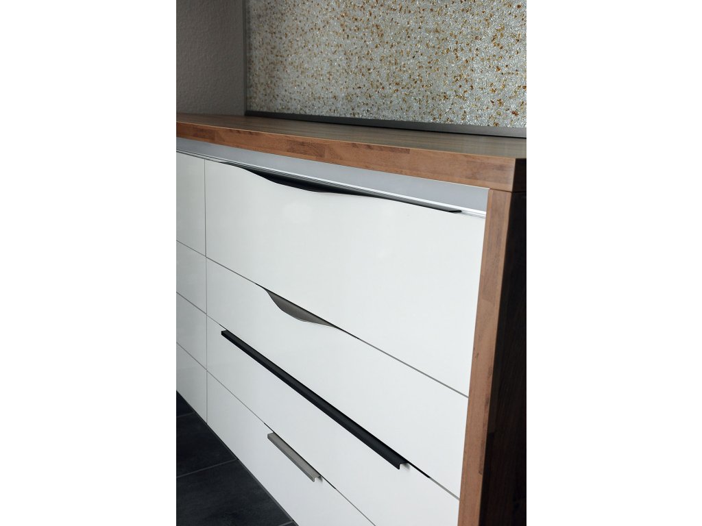 Tato profilová úchytka se zapouští z vrchu do hrany dvířek do výfrezu o šířce 3mm. Úchytka se volí přesně dle velikosti dvířek a je dostupná v těchto délkách: 245, 295, 345, 395, 445, 495, 545, 595, 695, 795, 895, 995, 1095 a 1195 mm.